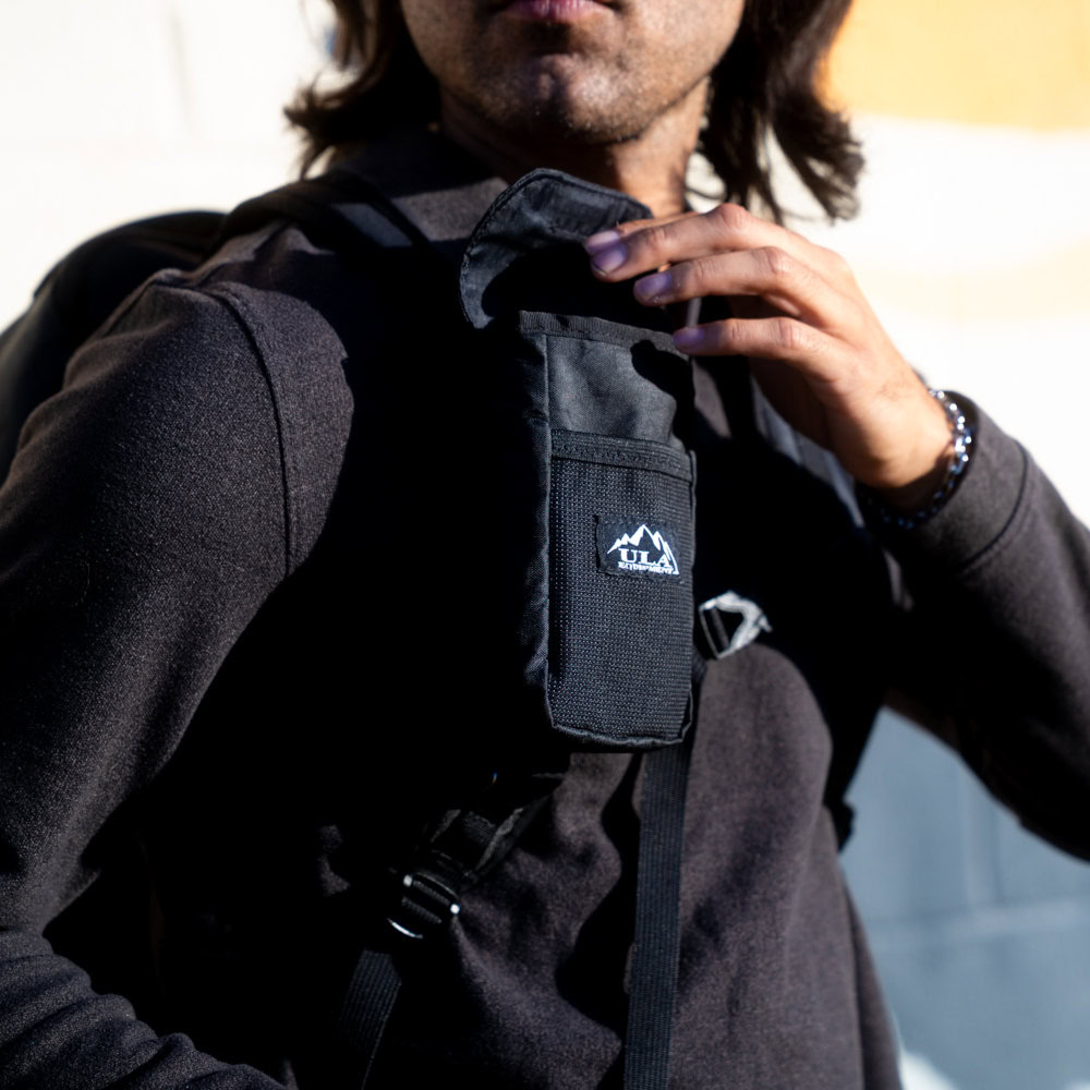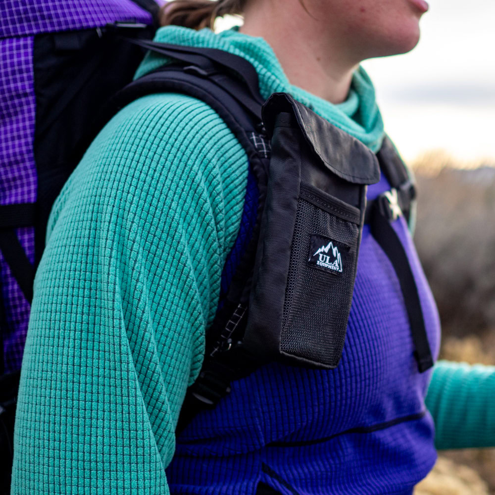 The EPX200 Polarity Magnetic Pocket attaches easily using upgraded Duraflex ¾" Gatekeeper G Hooks and is compatible with all ULA shoulder strap styles (S, J, and Hybrid) and most other backpacks with similar daisy chains on the shoulder straps.