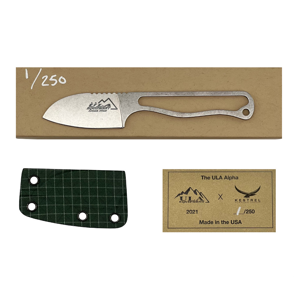 The ULA Alpha is the result of Kestrel and ULA’s effort to produce a knife that blended ultralight and functionality while offering a premium steel.